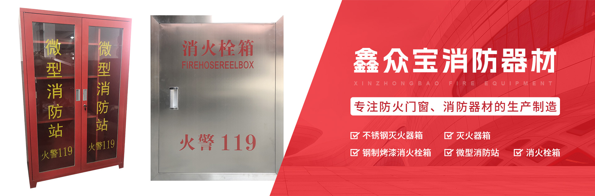 上海鑫众宝消防器材有限公司座落在上海青浦朱家角,厂房占地面积15多亩地,建筑面积2万多平方米。公司主要生产及销售钢制防火门、钢制防火窗、钢质门、无机布防火卷帘门、钢制防火卷帘门、消防栓箱、灭火器箱,配电箱、高低压配电柜系列等。公司引进国外先进工艺,一直持续增加研发投入,打造出一支优秀的资深团队,利用自有工厂优势,迅速将研发成果转化为产品,推向市场,公司产品全部经国家相关部门检测并通过,资质证书齐全,销售网络涵盖全国各省、市工程。